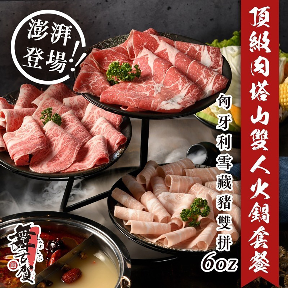 1. 頂級肉塔山雙人套餐一套(國寶主餐:匈牙利雪藏豬雙拼6oz)