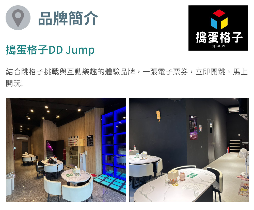 1. 本券限2人可於平日至【搗蛋格子DD Jump】使用45分鐘乙次。