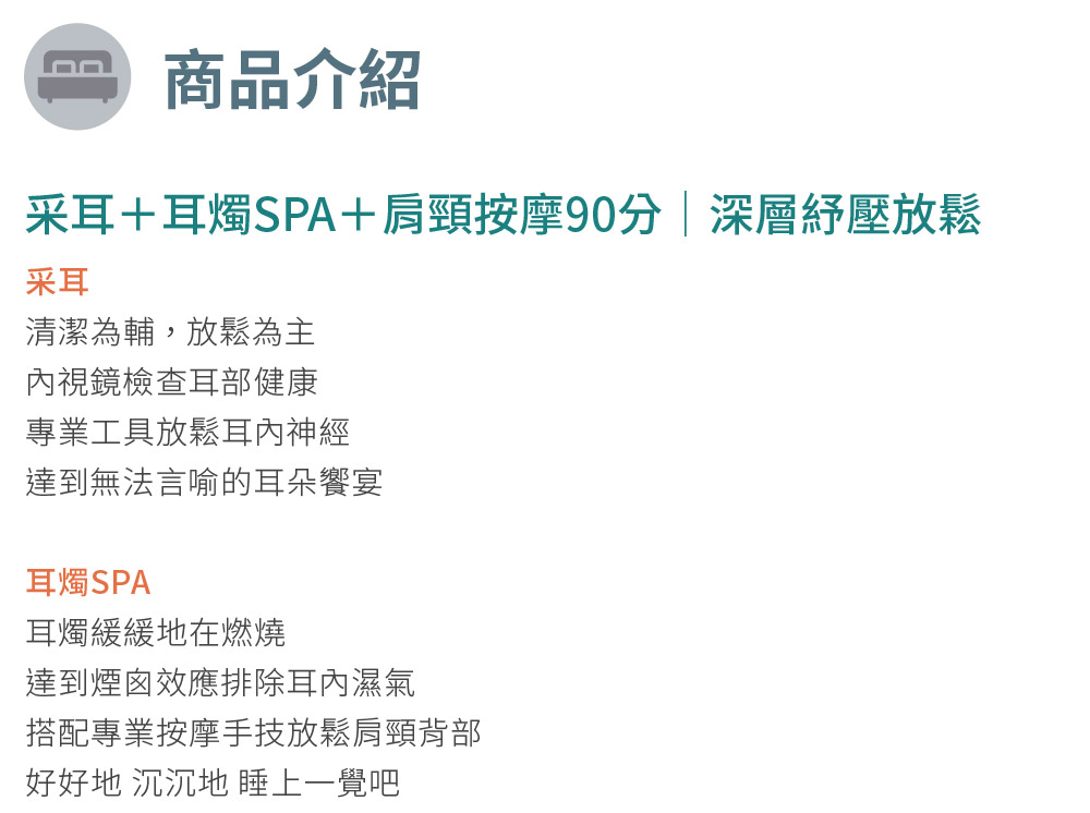 5. 本券課程內容包含「采耳+耳燭SPA+肩頸按摩90分鐘」。