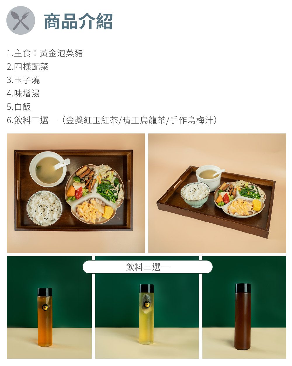 • 憑本票券兌換:古亭捷運站【五畝禾】黃金泡菜豬定食套餐券(含飲料)(MO)